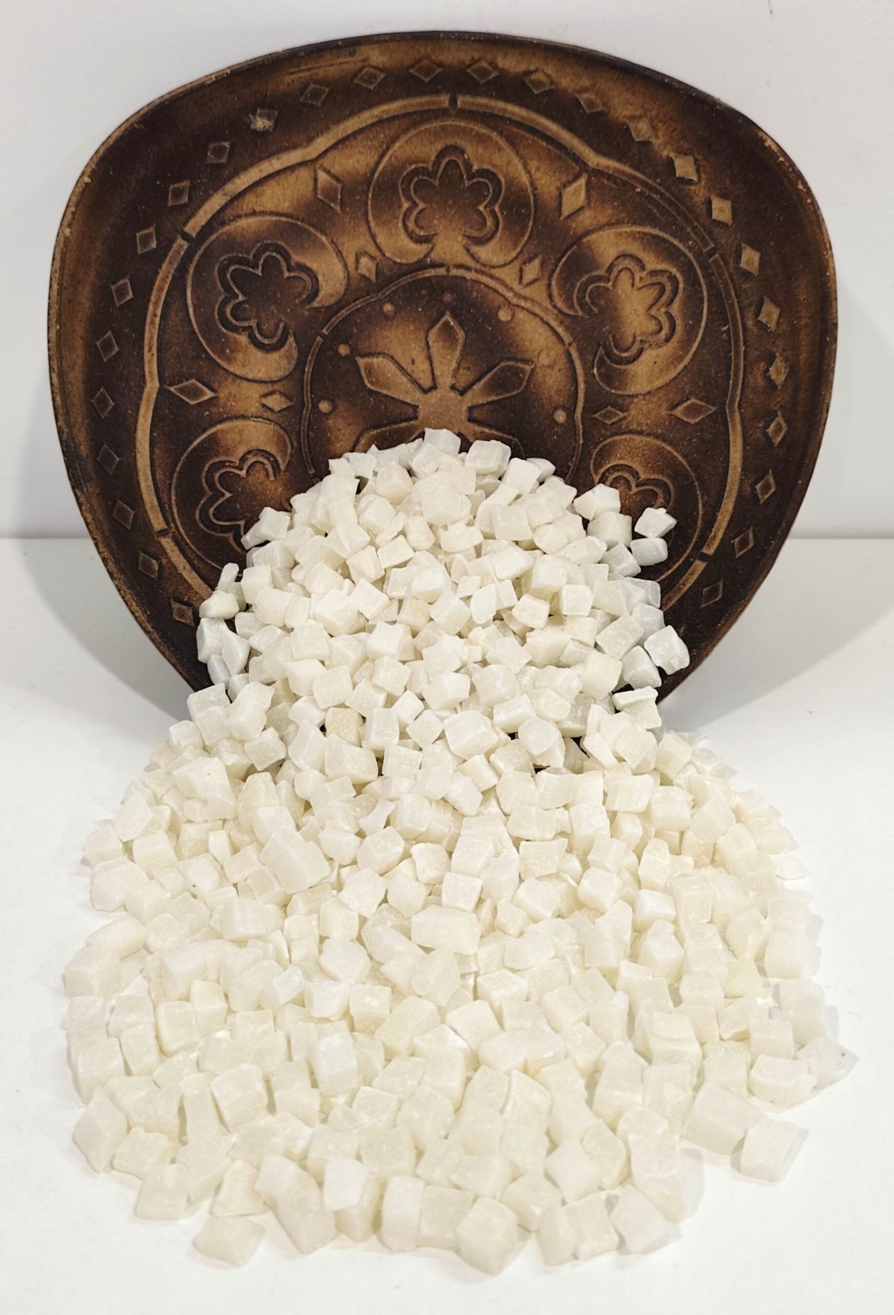 O coco em cubos (calibre 8/10 mm) é obtido a partir da polpa da noz de coco selecionada, que é cortada em pedaços uniformes e submetida a um processo de desidratação controlada. Apresenta uma textura carnuda, firme e ligeiramente crocante, oferecendo todo o sabor exótico e doce do coco numa forma prática e pronta a consumir.