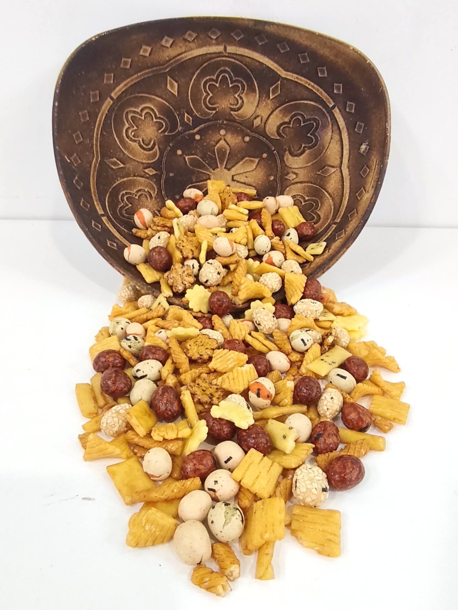 A mistura Japonesa é uma seleção vibrante de aperitivos de inspiração oriental, que combina diferentes texturas, formas e sabores num só conjunto. Esta mistura destaca-se pelo seu caráter exótico, unindo o crocante das coberturas de arroz e milho a especiarias selecionadas, oferecendo uma experiência sensorial variada e colorida.