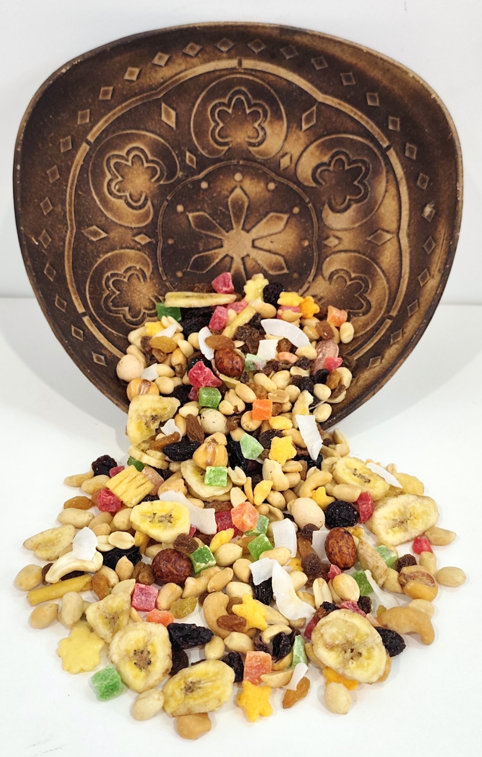 O Mix de Frutos Secos é uma seleção premium que combina a crocância das nozes e amêndoas com a doçura natural das frutas desidratadas (como as passas ou bagas). É uma mistura harmoniosa, ideal para quem procura um snack prático, saciante e extremamente nutritivo, oferecendo o melhor de dois mundos: a gordura saudável das sementes e a energia rápida da fruta.